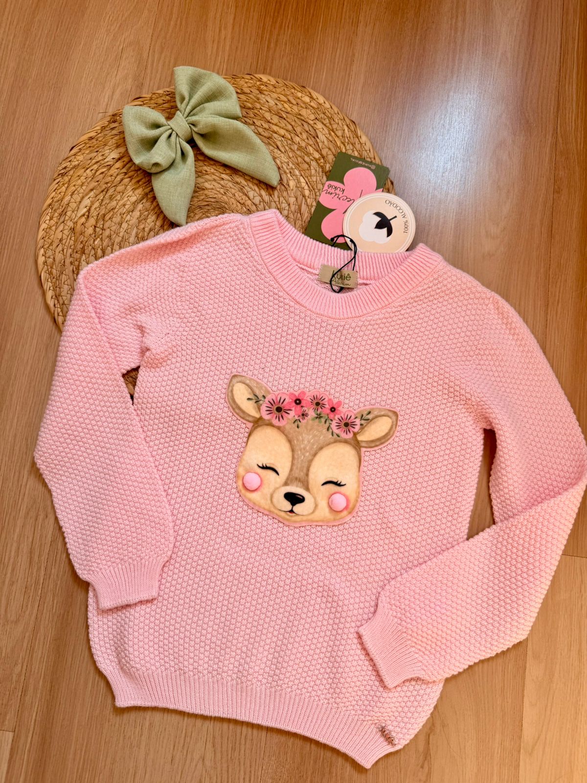 ✨Casaco Infantil Kukiê Inverno Rosa Claro Cervo Tricot
