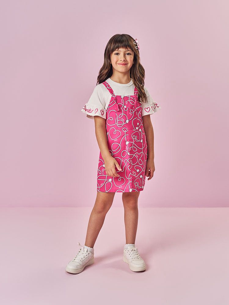 Apresentamos a Salopete Infantil Cinti, uma peça moderna, delicada e cheia de charme, perfeita para compor looks confortáveis e estilosos para sua princesa.