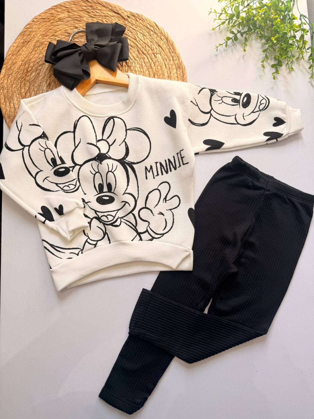 Conjunto infantil estiloso e confortável, perfeito para o dia a dia das pequenas. A blusa em moletom traz uma estampa delicada da Minnie Mouse , deixando o look moderno e cheio de charme. Acompanha calça em ribana, que garante ajuste confortável e liberdade de movimento.